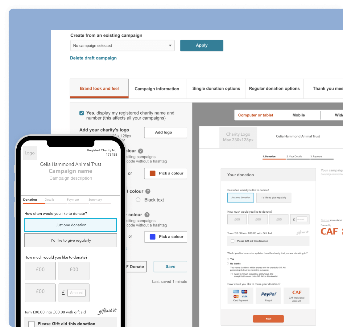 The opportunityCharities needed a faster, more reliable way to create donation campaigns they could embed on their own websites. The existing process caused drop-offs, lost progress, and high support demand.Improving this experience was a strategic priority within the CAF Operating Plan to drive growth and scale digital capability.What I deliveredA new campaign set-up wizard that enables charities to create, preview, and publish donation pages with confidence.Key improvements included: