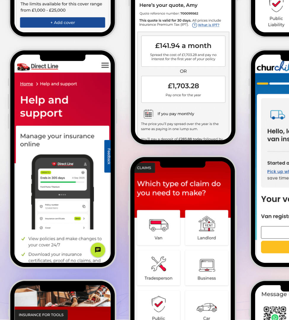 Senior UX Designer with 15+ years' experience driving digital transformation through customer-centred design.I lead UX for commercial insurance at Aviva and Direct Line, delivering end-to-end journeys that increase conversion, drive self-service adoption and reduce cost to serve.My background spans insurance, financial services, charity, and logistics, where I simplify complex, regulated experiences. This includes secure banking authentication, quote and buy journeys and self-service platforms, always balancing customer needs with commercial and operational outcomes.
