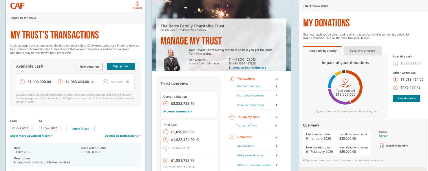 CAF American Donor Fund (CADF), a leading platform in offering philanthropy services for dual UK and US taxpayers. A smart, tax-effective way to achieve greater impact with customers' philanthropy.More than $1 billion donated since its creation. My UX improvements increased the amount of donations reaching charities around the world.