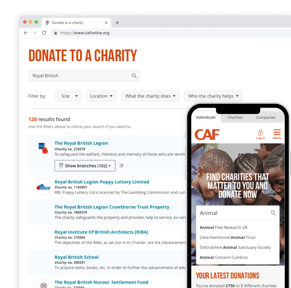 CAF's Charity Search is the first step of their digital donation journey, allowing customers to discover 170,000 verified UK charities. A fast, simple way to find the causes they care about.